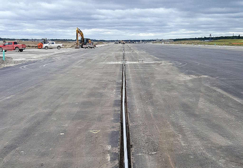 The existing runway centerline, edge light, and touchdown zone lighting systems were upgraded to LED with existing conduit/light base cans being removed, disposed of, and replaced. Lighting for the connector taxiway (centerline, guard lighting) was also designed to be LED in conjunction with the existing reinstalled LED taxiway edge lights on new infrastructure.