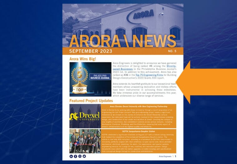Check out the September 2023 issue of our Arora Engineers Newsletter to see all of the exciting things that have recently happened at Arora!
