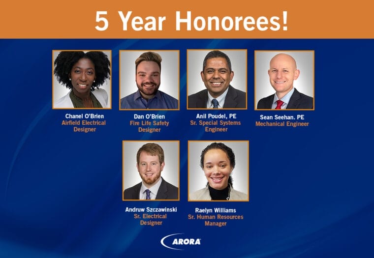 At Arora Engineers (Arora), we believe that our people are the heart of our success. This year, we’re proud to honor a remarkable group of team members who have reached the milestone of five years of service. Each of them has made invaluable contributions to our projects, our culture, and our clients, and we’re excited to share their reflections on what inspires them, challenges them, and shapes their journey here at Arora.