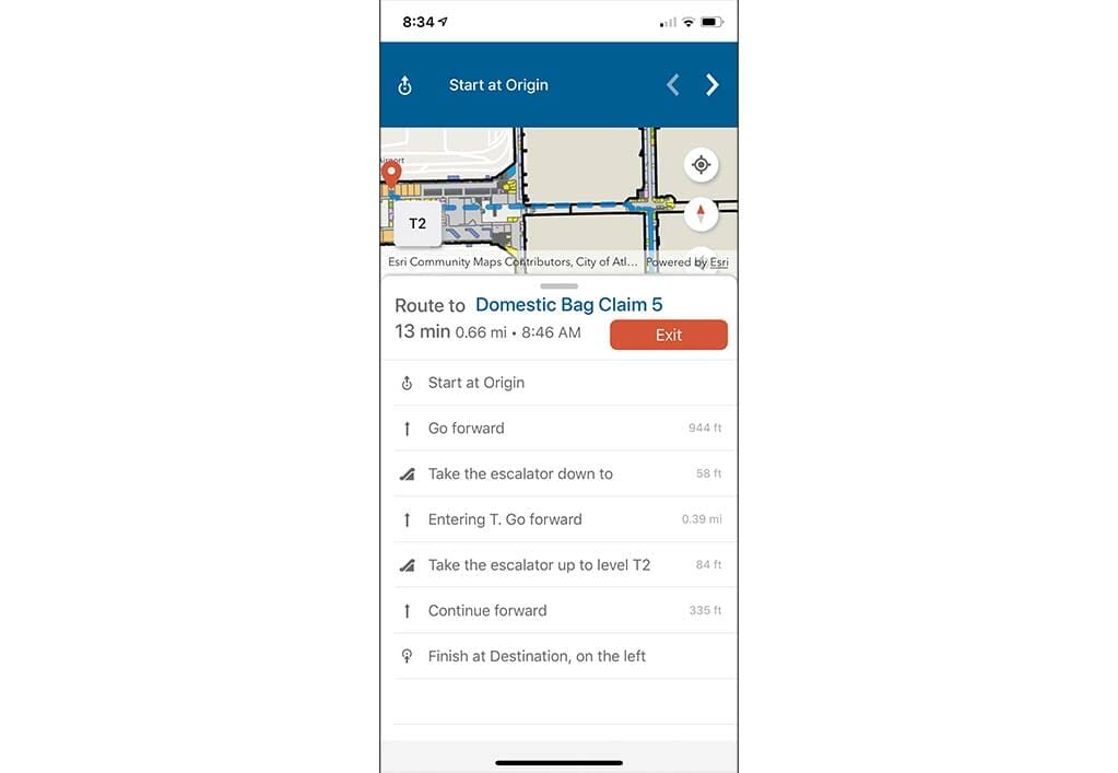 Web and Mobile Application Publication: Arora published data to web and mobile applications to demonstrate the POI search and wayfinding capabilities using Esri’s configurable ArcGIS Indoors templates. The web template was configured to match the ATL branding conditions, and links to the routing services were established. These applications were used to demonstrate the basic Indoors functionality to a variety of departments throughout ATL.