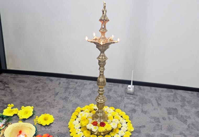 The India office was beautifully adorned to welcome Manik Arora, PE, President and CEO of Arora. Upon his arrival, a traditional shawl was draped around him, followed by the ceremonial ribbon-cutting to officially open the new Monyx office. As part of the traditional lighting of the lamp, Manik then illuminated the space symbolizing enlightenment and auspicious beginnings. To honor this special occasion, he was also presented with a cultural Indian gift.