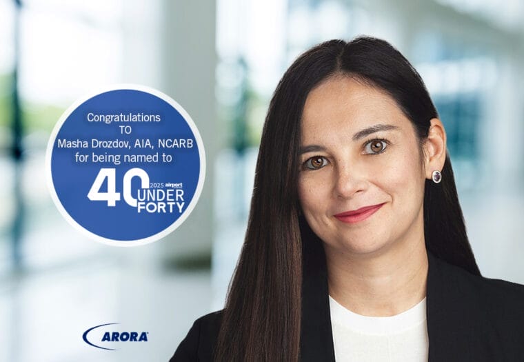 Arora Engineers (Arora) is proud to recognize Masha Drozdov, AIA, NCARB for her selection to Airport Business’ 2025 Top 40 Under 40, honoring her exceptional leadership and impact in the aviation design industry.