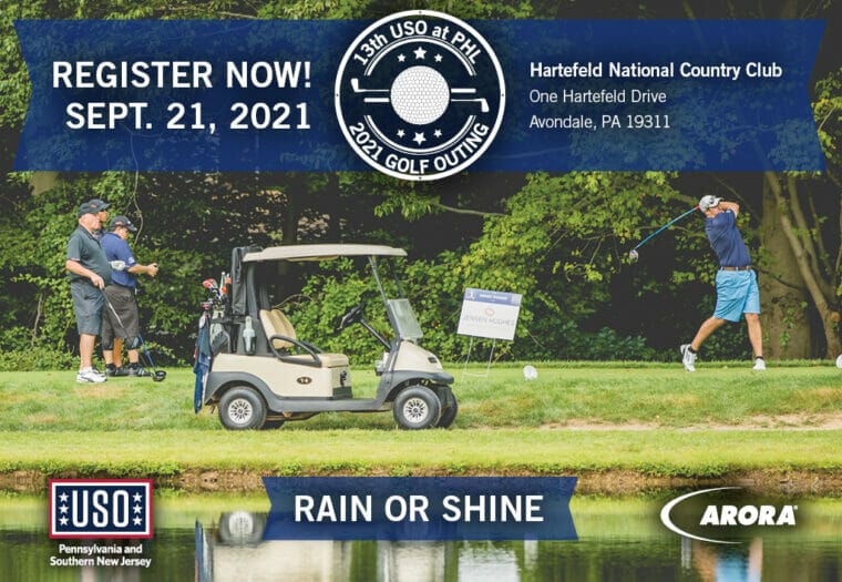 Arora Engineers, Inc. and Liberty USO are pleased to announce the 13th annual 2021 USO Golf Outing. We hope that you will register now to join us for this great event, benefiting the PHL USO and featuring remarks from PHL Airport Leadership. Over the last five years alone, we have generated over $600,000 thanks to your help! This year’s outing will take place at a new location at Hartefeld National Country Club, who has previously hosted The Bell Atlantic Classic on the Senior (now Champions) PGA Tour. This is a great championship course you do not want to miss!