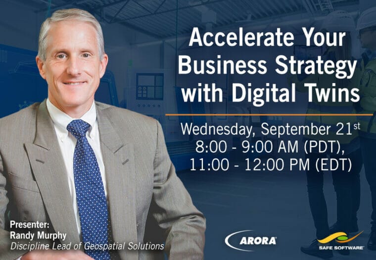 Randy Murphy, Discipline Lead of Geospatial Solutions at Arora Engineers (Arora), will be a presenter for the upcoming Safe Software webinar “Accelerate Your Business Strategy with Digital Twins.”