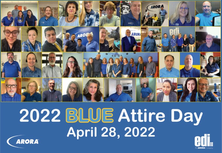 Each staff participating equaled a $10.00 donation, and those that wore Arora or EDI blue-branded gear equaled a $15.00 donation. A total of 61 staff members wore blue and raised $710.00 in support of these necessary child-friendly spaces. Arora also sent a donation of hand sanitizer, gloves, and cleaning supplies to Aston Pharmacy Home Health Center, who will also be sending the supplies to Ukraine.