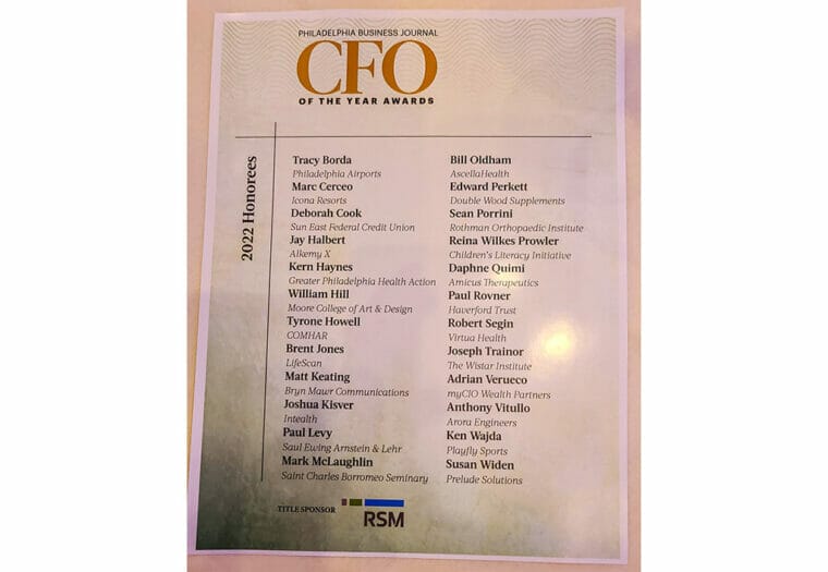 Tony J. Vitullo, CPA, CGMA Named One of Philadelphia Business Journal’s CFOs of the Year 2022