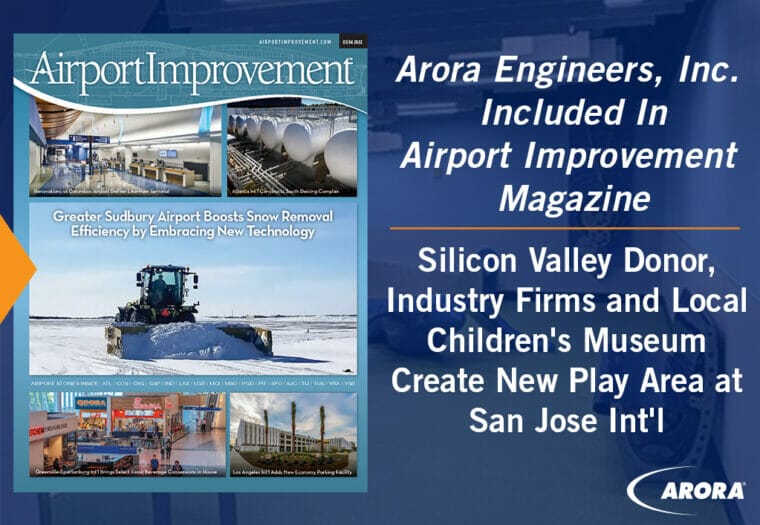 Arora Engineers, Inc. (Arora) was included in the March 2022 issue of Airport Improvement Magazine in an article entitled, “Silicon Valley Donor, Industry Firms and Local Children’s Museum Create New Play Area at San Jose Int’l.” The article discusses the new Zoom Zone Children’s Play area which recently opened at San Jose International Airport.