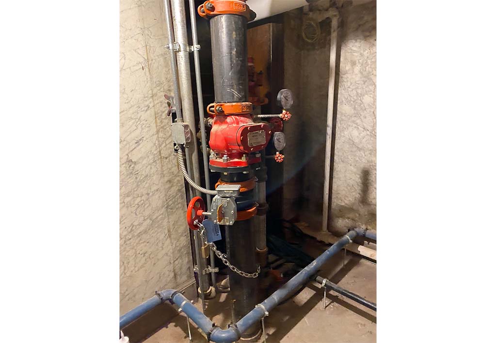 The scope of work for this building required fire sprinkler system coverage in non-sprinklered Basement and 1st Floors. New zones were established and connected to existing protection on other floors.